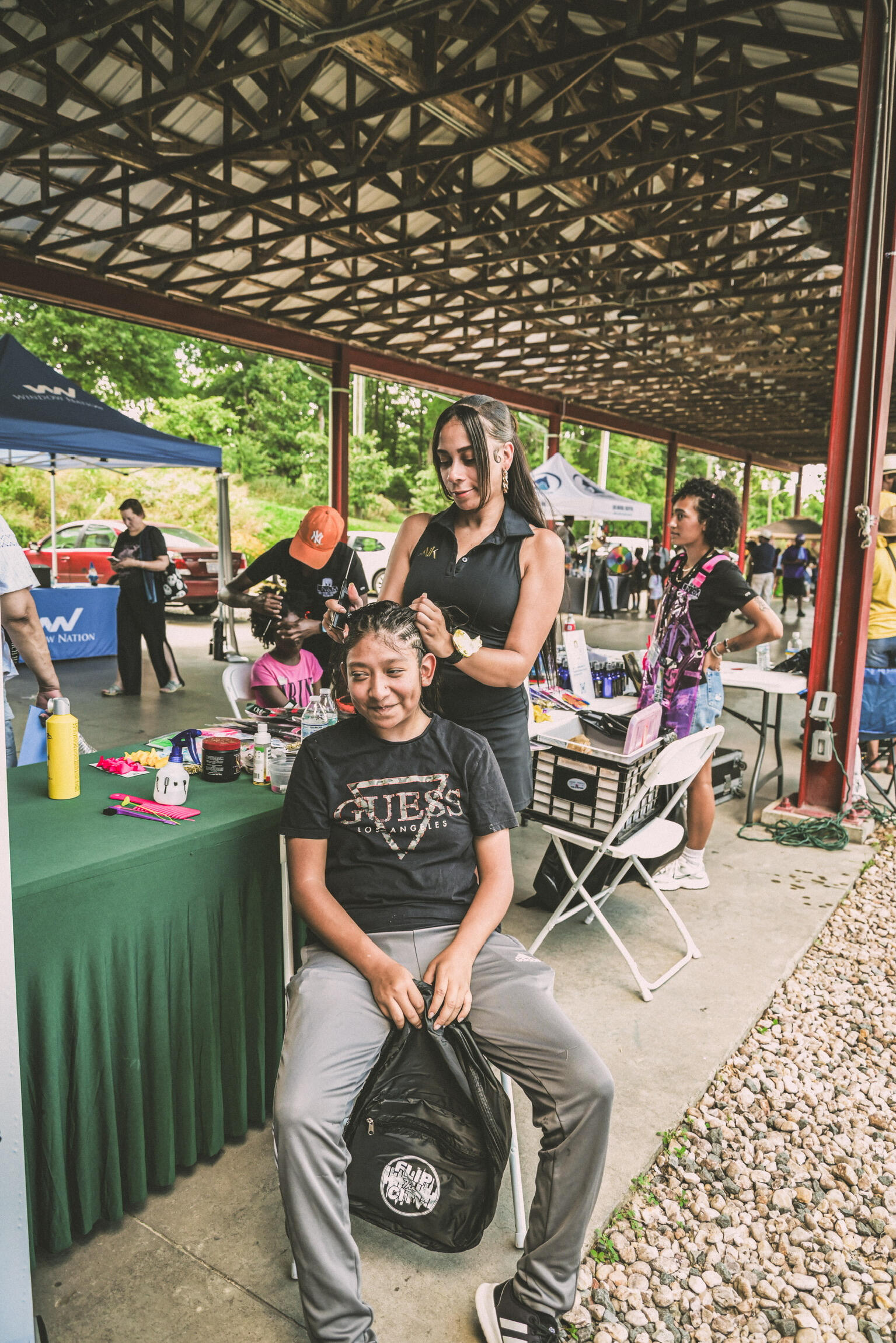 • Free food, haircuts, hairstyles, games, performances, and live music